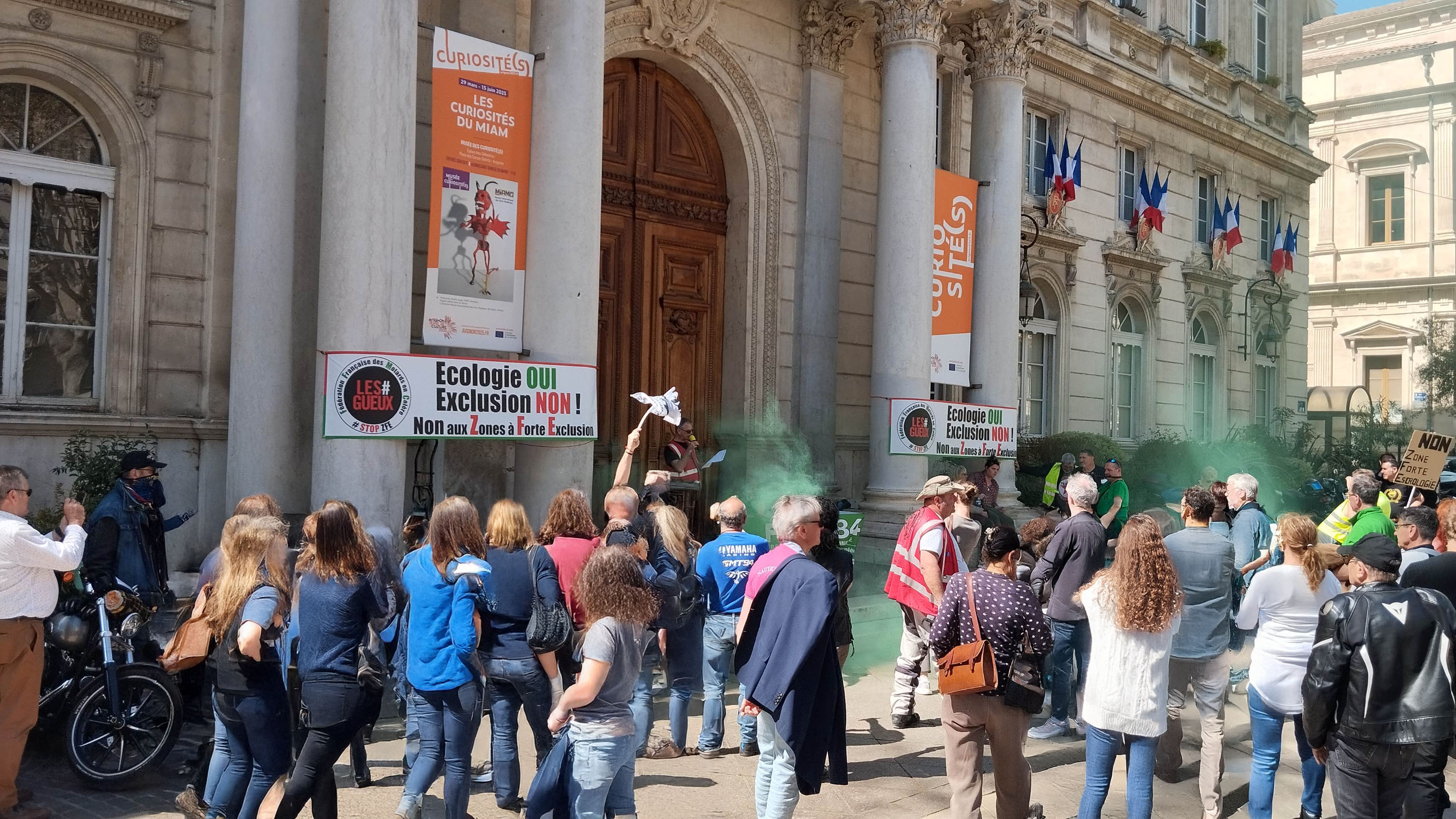 Nous étions une centaine réunis devant la mairie d’Avignon ce 6 avril pour protester contre les ZFE.